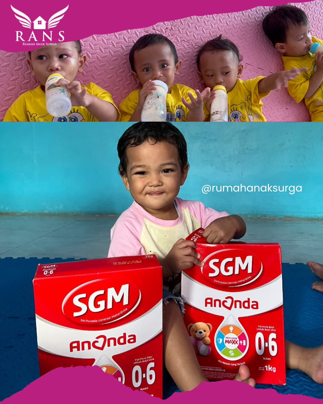 CATATAN: Hasil donasi dari Bapak/Ibu/Kakak #SahabatBaik akan dialokasikan untuk pembelian kebutuhan bayi-bayi terlantar di Rumah Anak Surga